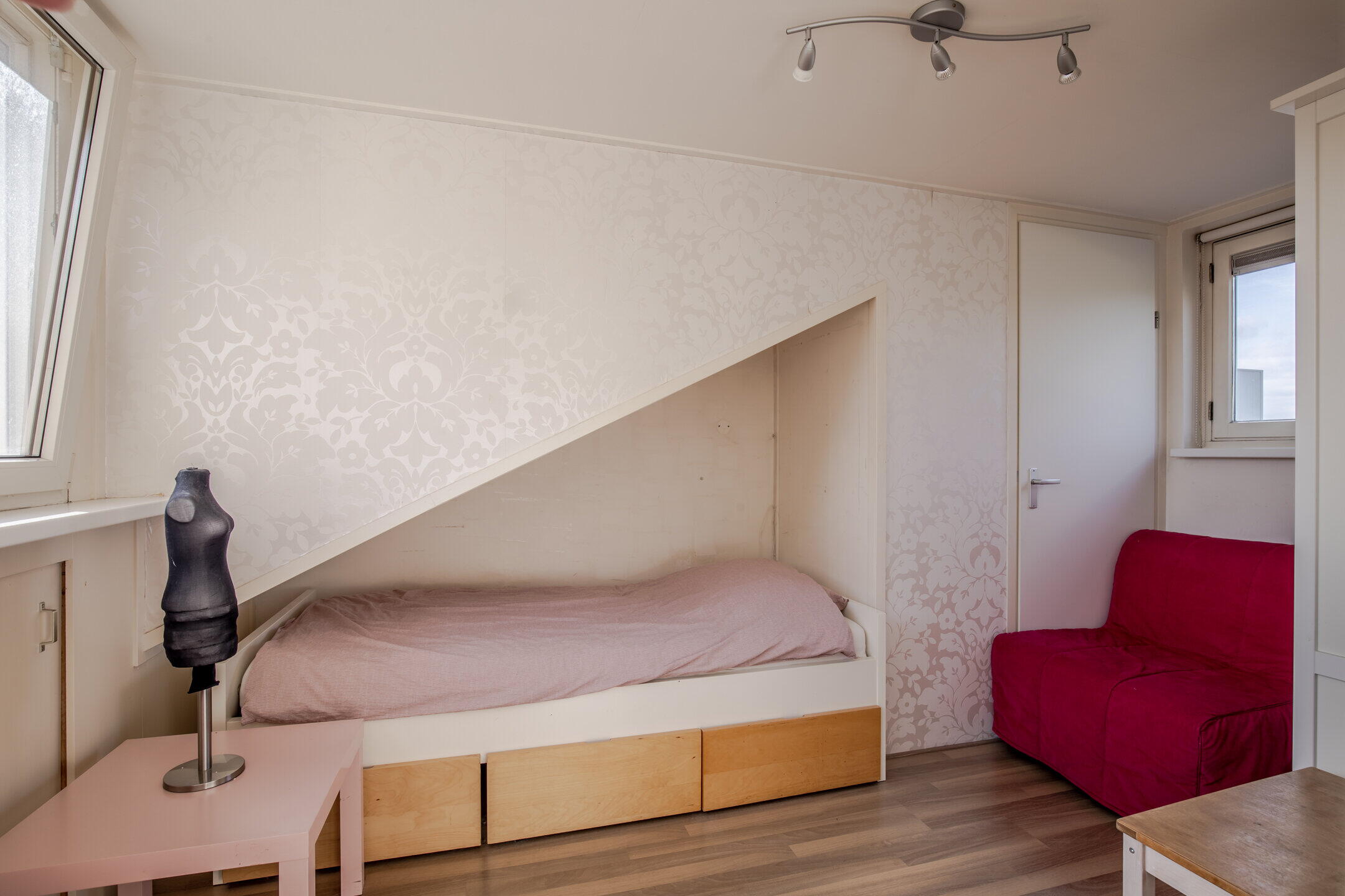 De vaste trap brengt u op de overloop welke u toegang geeft tot 2 slaapkamers. Door het plaatsen van de dakkapel over de volle breedte zijn hier 2 volwaardige kamers ontstaan. De dakkapel is voorzien van rolluiken.