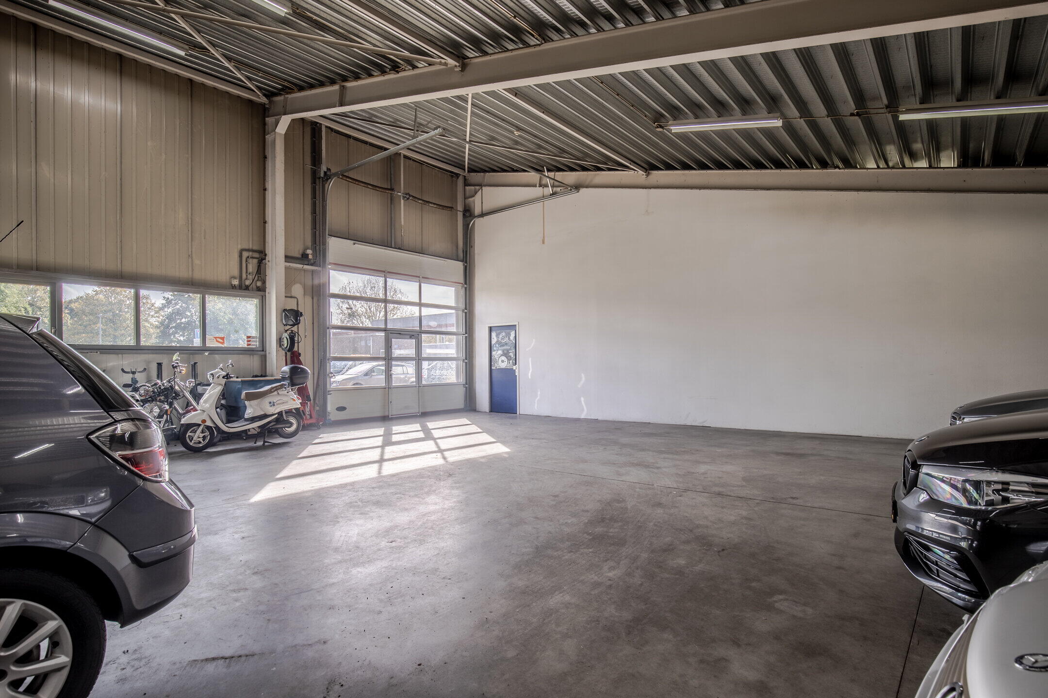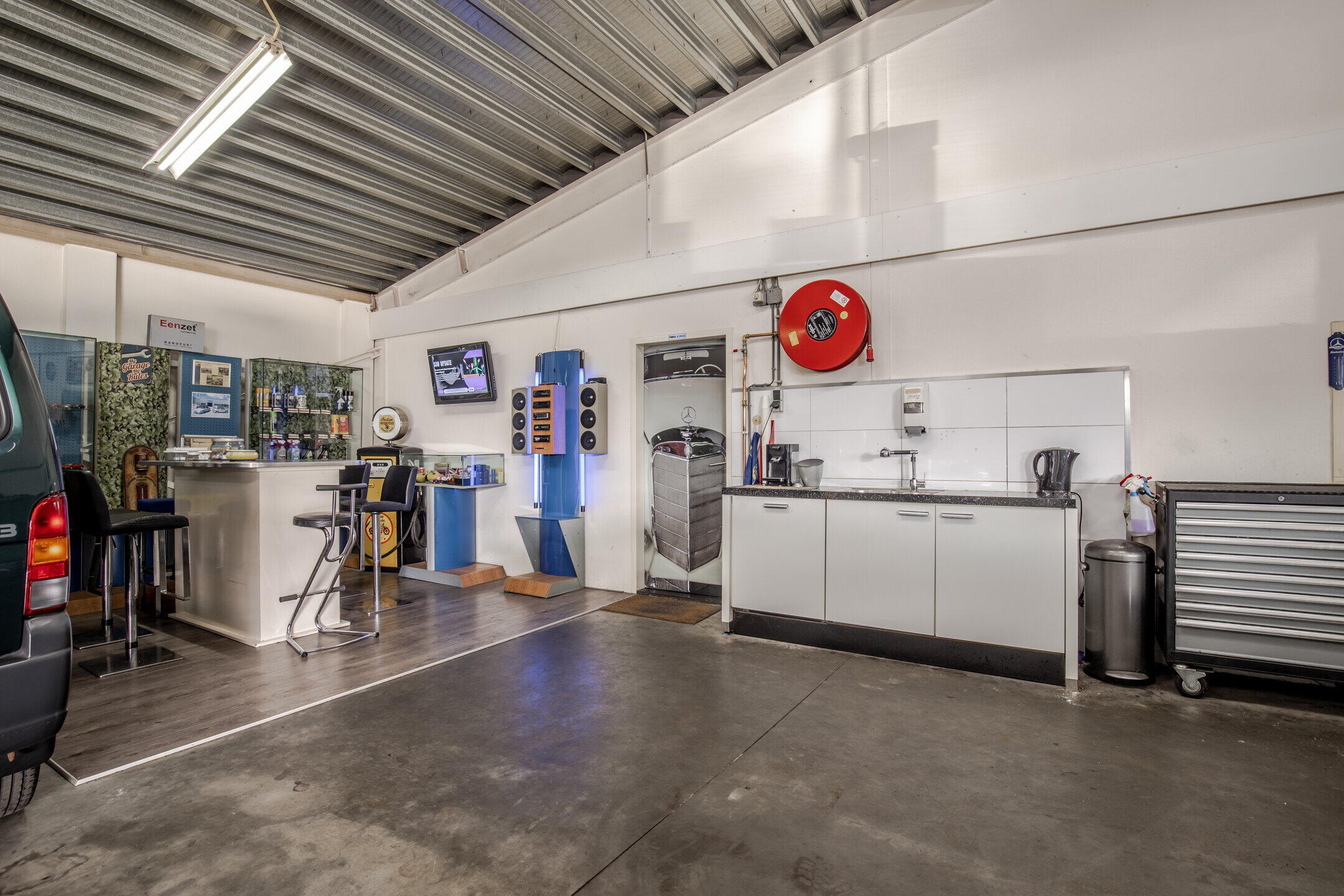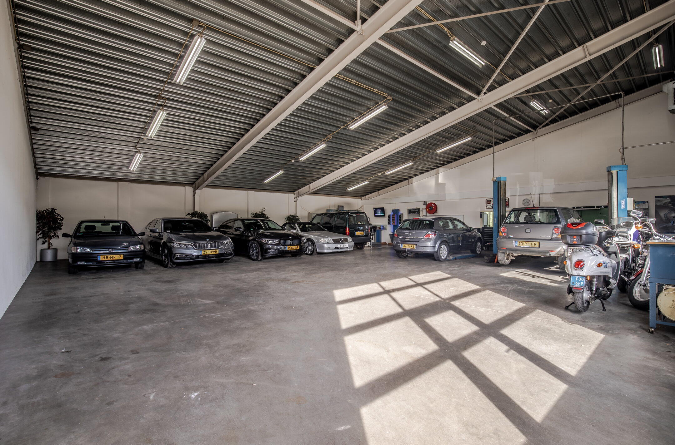 De bedrijfshal is nu ingericht als een autogaragebedrijf. Er is een pantry met een vaatwasser en een close-in boiler. De opslagruimte is voorzien van een eigen garagedeur. De hal is toegankelijk middels een overheaddeur met hierin een loopdeur en nog een extra roldeur. Er zijn 2 grote parkeerterreinen aan zowel de voor- als achterkant voor zeker 15 auto’s.